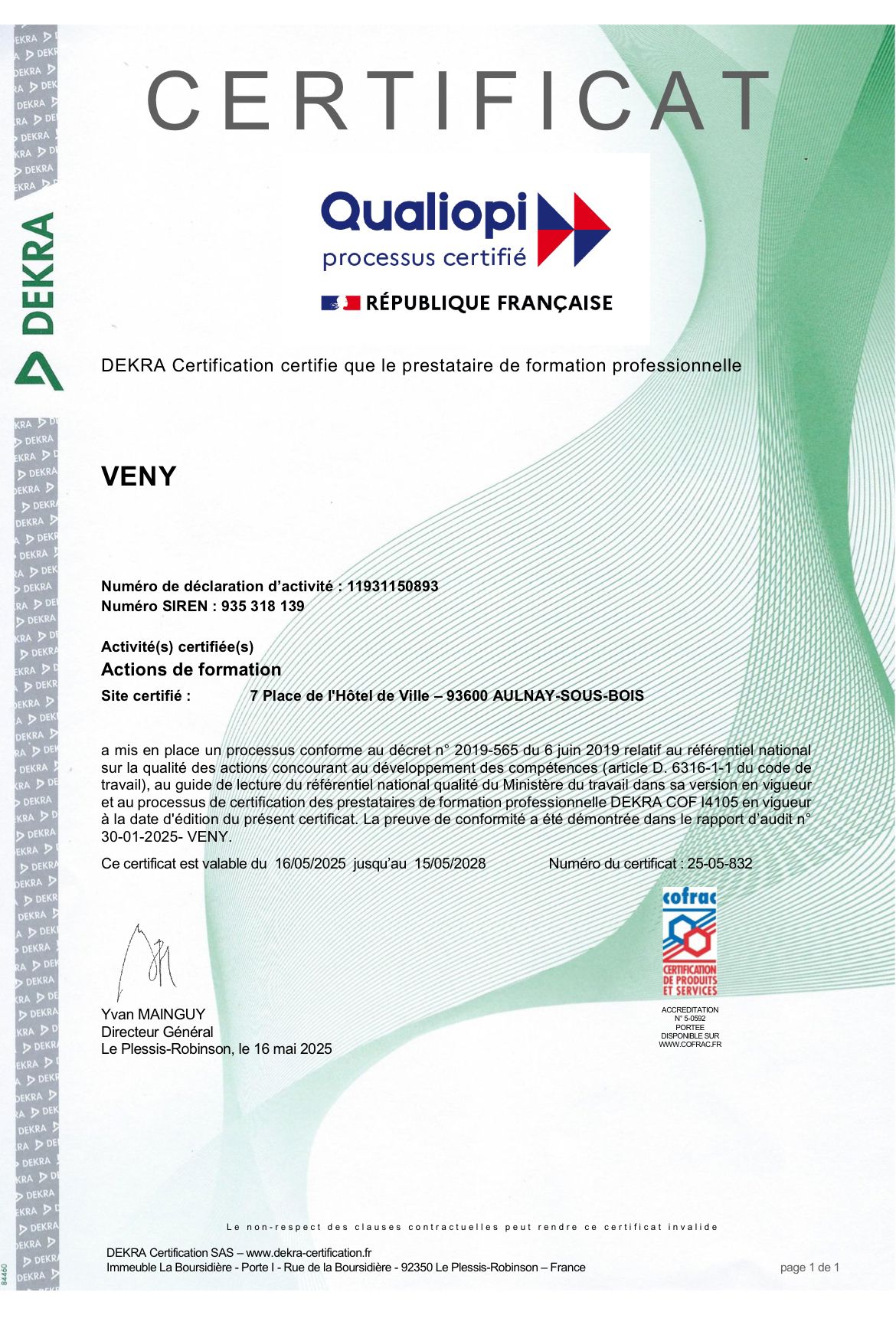 VENY est un organisme de formation Certifié Qualiopi, dynamique et moderne, fondé sur un réseau d’experts cumulant plus de 15 ans d’expérience métier dans leurs domaines respectifs.